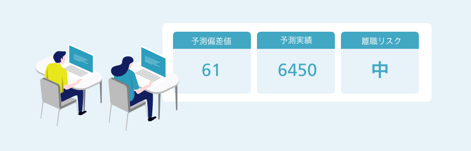 実績数値は登録実績と従業員の適性検査結果をもとに予測されます。